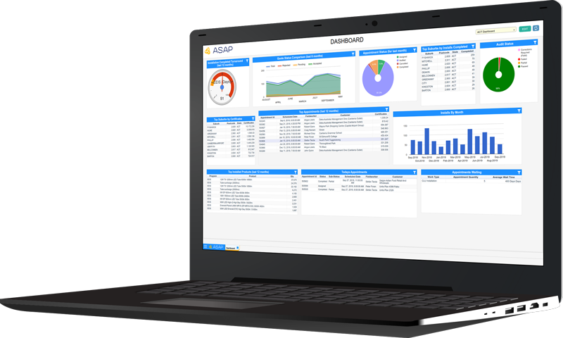 Dataforce ASAP is a cloud based Field services system. It has been especially tailored towards companies operating in the Energy Efficiency sector under government programs.